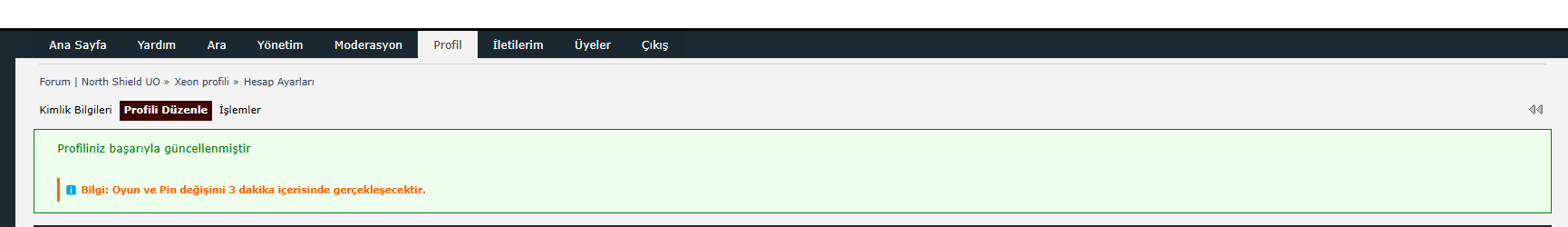 * İşlemleriniz ilgili adımları tamamladıktan sonra oyuna tekrar giriş yaptığınızda başarılı bir şekilde kaydedilecek.